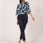 Bluza sa veoma modernom formom, sa blago spuštenim rukavima, koji imaju jedan specifičan završetak. Završetak cele bluze je sa lastišem. Na prednjici se može vezati petljica u vidu mašne na okovratniku. Savršeno se uklapa sa pantalonama od kepera ali i od viskoze.
