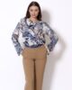 Izuzetno nosiv model, savršeno se može kombinovati uz pantalone i suknju visokog pojasa. Dugih rukava sa uskom manžetnom. Bluzu krasi mali izrez na zadnjem delu, kao i dugme koje zatvara vratni izrez. Bazna bluza koja uz AMC odelo daje savršenu notu. Model izrađen u dezenu daje potpuno drugačiji sklad i harmoniju kada se kombinuje sa ostalim modelima iz outfita.