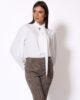 Bluza sa mašnom koja se skida, gde se dobija potpuno pročišćena varijanta. Može se prebaciti i kao šal, kravata, po želji. Dučih rukava, sa puf formom. Rukave krase manžetne sa kopčanjem. Može se kombinovati sa istim ili drugim outfitima iz nove jesenje kolekcije.