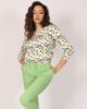 Ova izuzetno nosiva bluza savršeno se uklapa uz pantalone i suknje visokog pojasa, čineći je idealnim osnovnim komadom u svakom outfitu. Dužina rukava je 7/8, sa uskom manžetnom koja dodaje šarm i prefinjenost. Model krasi mali izrez na zadnjem delu, kao i diskretno dugme koje zatvara vratni izrez, čineći ga elegantnim i praktičnim. Ova baza je savršen detalj koji, u kombinaciji sa AMC odelom, donosi savršenu notu stila. Izrađuje se od autentičnog dezena, što joj daje jedinstven izgled.