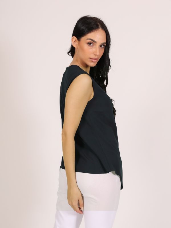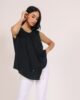 Veoma ležeran, ali stilski upečatljiv model bluze bez rukava koji se ističe igrom asimetrije i savremenom siluetom. Prednjicu krasi preklop koji se produžava ispod osnovne dužine modela, stvarajući vizuelni efekat slojevitosti i pokreta. Ovaj detalj daje bluzi dinamiku i čini je drugačijom, ali lako nosivom. Zahvaljujući jednostavnom, ali modernom kroju, bluza se idealno kombinuje sa ostalim artiklima iz AMC kolekcije – bilo da je reč o suknjama, šortsevima ili širokim pantalonama. Pravi izbor za svakodnevne, ali i nešto doteranije prilike uz minimalan trud.