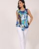 Varijanta već poznatog modela bluze bez rukava donosi dodatnu dozu izražajnosti zahvaljujući pažljivo odabranom dezenu. Asimetrični preklop na prednjici zadržava svoju funkcionalnu i estetsku ulogu, dok dezen unosi razigranost i živost u celokupan izgled. Prepoznatljiva forma ostaje ista – ležerna, udobna i laka za stilizovanje, ali sa dodatnim karakterom koji ovaj model čini posebno efektnim. Idealan je za kombinovanje sa jednobojnim komadima iz AMC kolekcije, ističući se kao dominantan element svakog outfita.