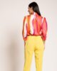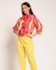 Bluza sa dekorativnom mašnom koja se može vezivati na više načina, pružajući slobodu stilizovanja, od potpuno pročišćene i minimalističke varijante do efektnih interpretacija u formi šala ili kravate. Ovaj svestrani detalj daje modelu posebnu dozu sofisticiranosti i individualnog izraza. Rukavi 3/4 dužine, oblikovani u suptilnoj puf formi, unose romantičnu notu, dok manžetne sa kopčanjem dodaju elegantan i prefinjen završetak. Izuzetno nosiv i stilski prilagodljiv model, savršen za kombinovanje sa sakoom KA50 i pantalonama KP80 u beloj boji.