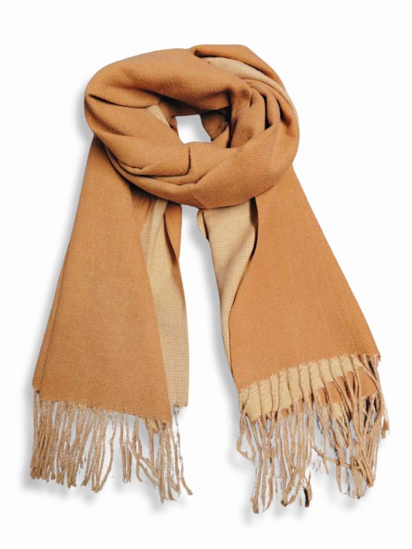 Ešarpa od poliestra u kamel boji.