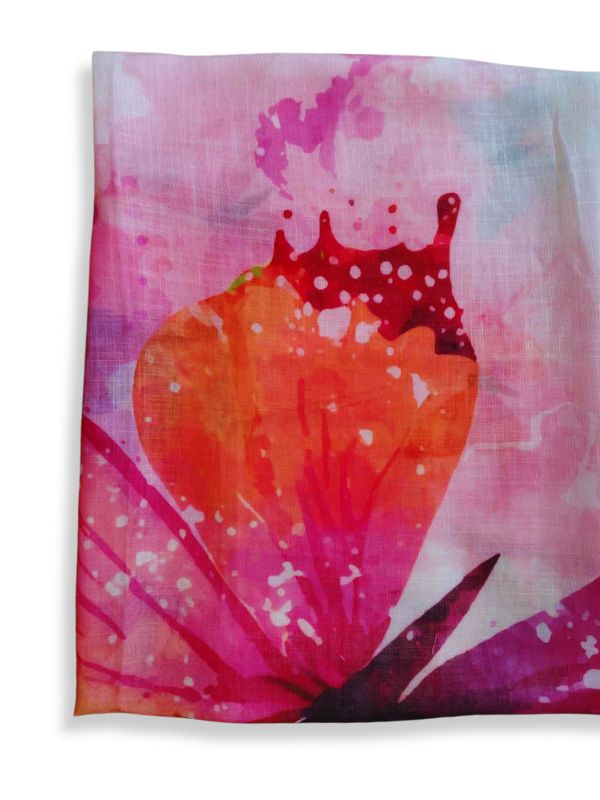 Ešarpa u crvenom cvetnom dezenu.