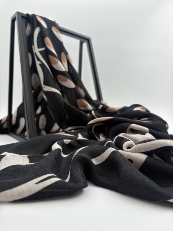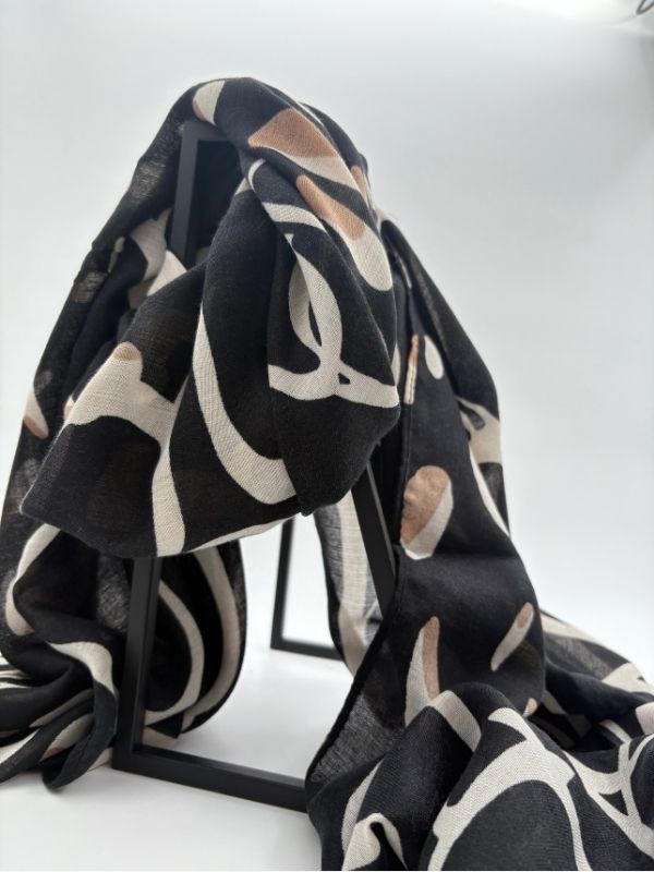 Ešarpa u bež/crnom dezenu.