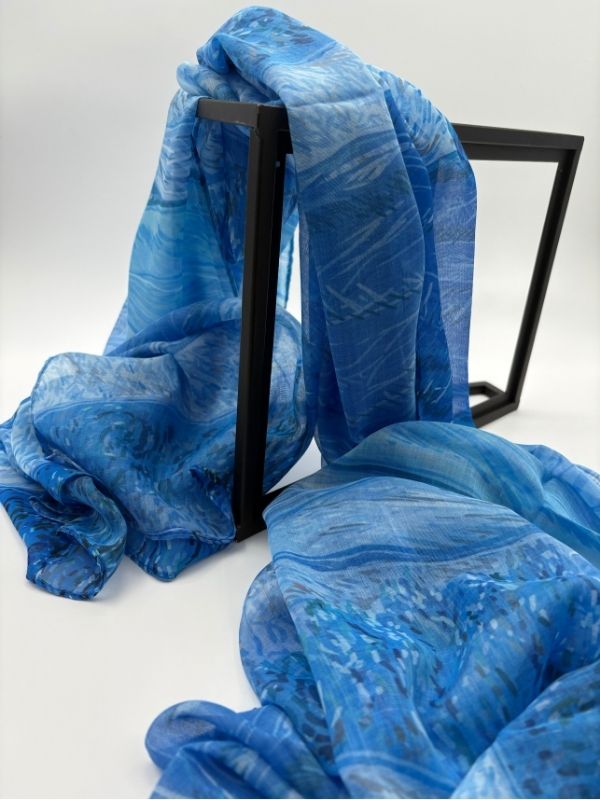 Ešarpa u plavom dezenu.