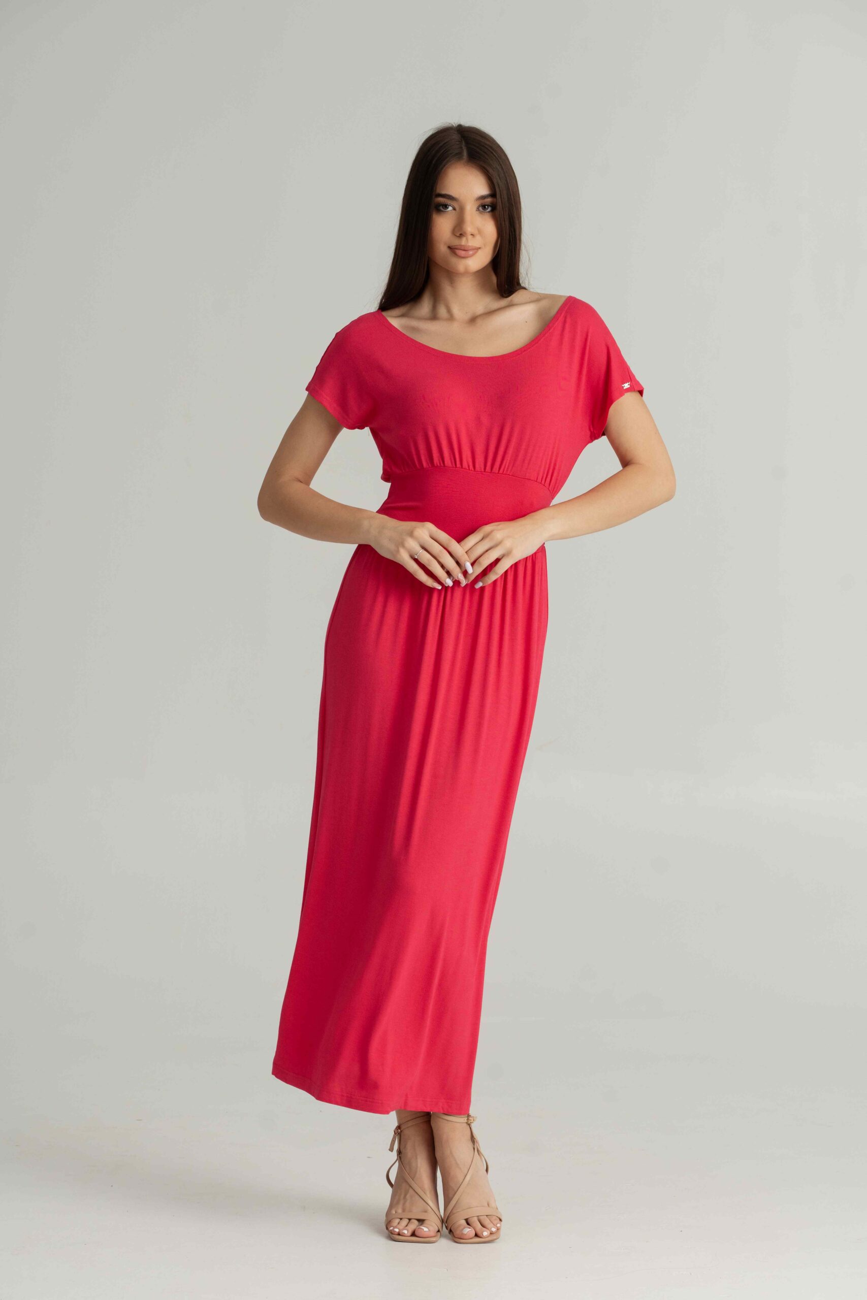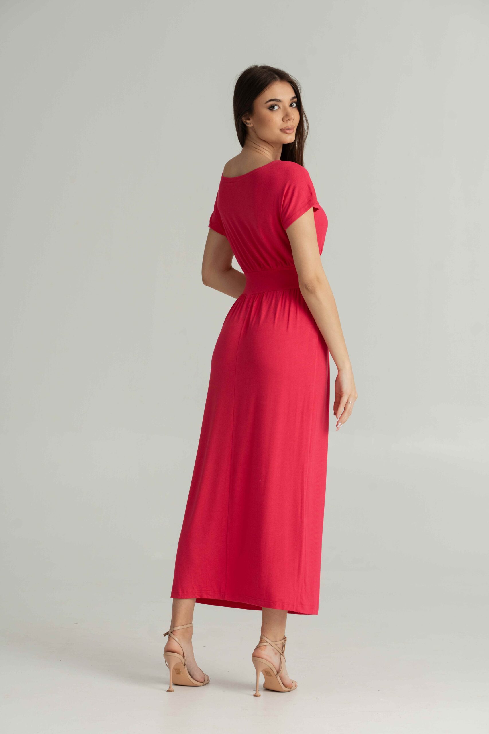 Trikotažna duga haljina u tirkiz, crnoj i boji maline.