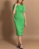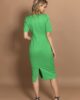 Bazna haljina sa kratkim rukavima. Dužina modela je malo ispod kolena. Krasi je četvrtasti, čamac dekolte. Model savršeno prati liniju ženske figure, tako da ističe njenu lepotu i gracioznost. Kopča se skrivenim rajsferšlusom po sredini leđa. Krasi je diskretan šlic na sredini zadnjeg dela. Model je idealan za svakodnevne, ali i svečane prilike.