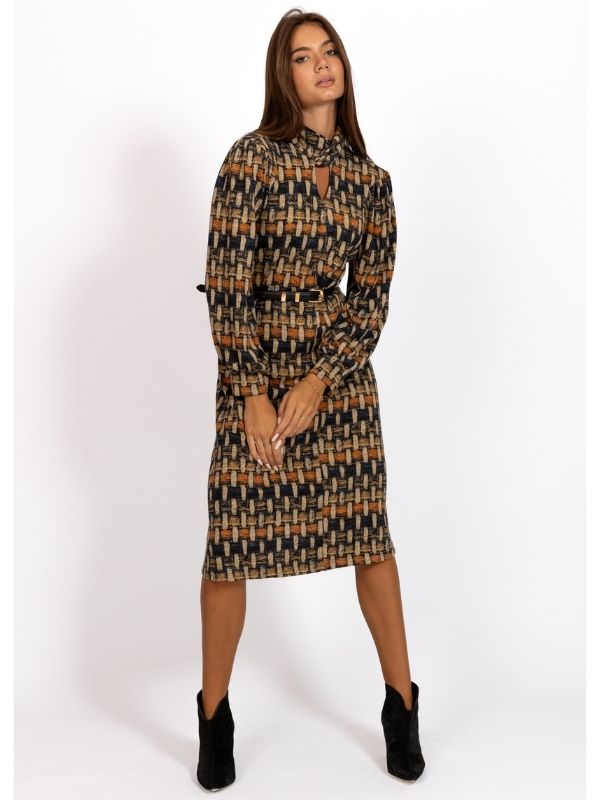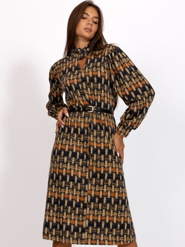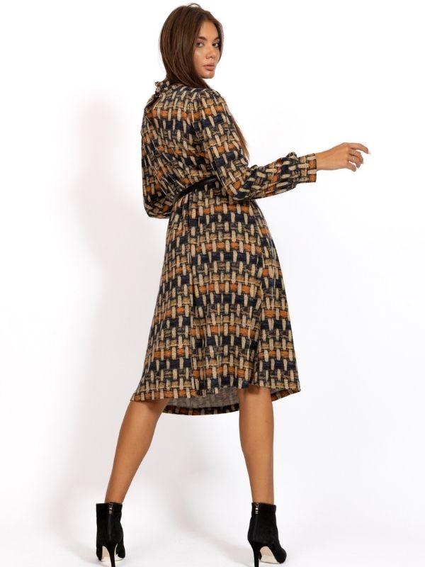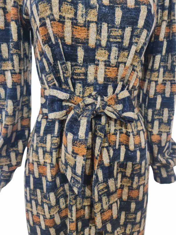 Haljina od mohera u bež/teget dezenu.