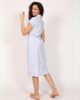Haljina donosi savremen i autentičan izgled kroz zanimljiv spoj klasične forme i upečatljivog dezena pruga. Dizajnirana u stilu produžene košulje, sa kopčanjem po sredini, pruža idealan balans između funkcionalnosti i stila. Kratki rukavi sa efektnim preklapanjem doprinose urednom, ali i elegantnom izgledu, dok čitav model odiše lakoćom i svestranošću. Haljina je odličan izbor za svakodnevne kombinacije, ali se uz pravi aksesoar lako transformiše u sofisticiran večernji outfit. Model za žene koje biraju ležernu eleganciju i stil bez napora – u svakom trenutku dana.