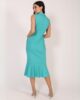 Veoma autentičan i damski model haljine koji spaja klasične forme sa inovativnim detaljima. Gornji deo krasi asimetričan preklop koji prati spušten rever, evocirajući izgled sakoa – što haljini daje formalnu notu sa modnim pomakom. U struku je postavljen našiveni pojas ukrašen dugmićima, koji naglašava siluetu i dodaje strukturiranost modelu. Posebnu pažnju privlači donji deo haljine, gde karneri u asimetričnom luku kreću od pojasa i nežno prate liniju tela, stvarajući pokret i vizuelnu dinamiku. Idealna za svečane, ali i poslovne prilike – za žene koje žele da ostave utisak istančanog ukusa i originalnog stila.