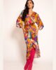 Raskošna haljina stvorena je za posebne prilike i crveni tepih. Prednji preklop oblikuje dubok, zavodljiv dekolte, dok kroj od bokova nežno pada, formirajući još jedan prefinjen preklop na prednjici. Široki “miš” rukavi, laganog i tečnog pada, unose dozu gracioznosti u svaki pokret. Savršen sklad čine kožni kaiševi iz AMC kolekcije, koji dodatno naglašavaju struk i oplemenjuju celokupan izgled. Haljina za trenutke glamura, samopouzdanja i sjaja – jer neke večeri traže da budete nezaboravne.