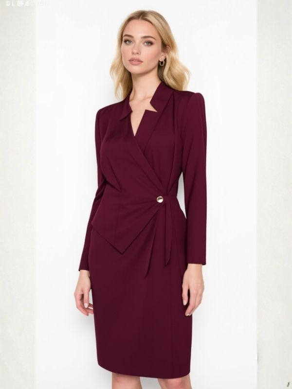 Haljina od štofa u burgundi boji.