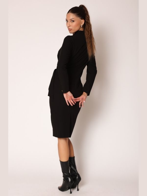 Haljina od štofa u crnoj boji.