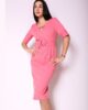 Haljina kratkih rukava osmišljena za udobne, a istovremeno stilizovane dnevne varijante, u kojima se elegancija susreće sa funkcionalnošću. Rukavi sa širim manžetnama daju modelu savremenu i modernu formu, dok precizni ušitci omogućavaju da haljina u potpunosti prati liniju tela i naglasi siluetu. Dubok, okrugao izrez dodatno je istaknut efektnim detaljem u vidu diskretnog otvora na prednjem delu, koji unosi suptilnu notu senzualnosti. Struk je naglašen kaišem od osnovnog materijala sa presvučenom šnalom, omogućavajući lako prilagođavanje oblika i savršen fit. Dužina do kolena čini ovaj model univerzalnim i izuzetno nosivim komadom, idealnim za svakodnevne obaveze, opuštene šetnje i neformalne dnevne prilike.