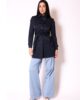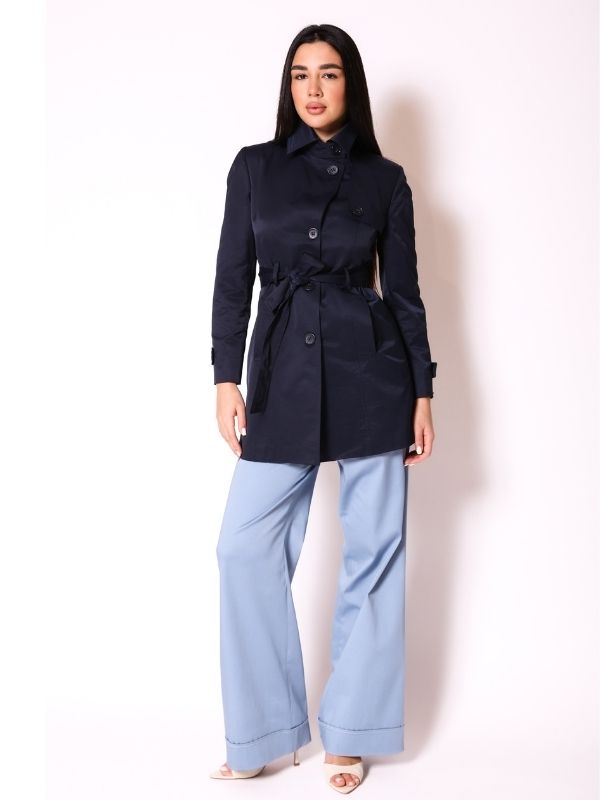 Jakna je pravi primer kako klasika dobija savremen zaokret. Jasne linije, izraženi dekorativni štepovi i kontrastni detalji na kragni, manžetnama i džepovima daju joj dinamičan, moderan karakter. Pojas u struku naglašava figuru i omogućava prilagođavanje siluete — nosite je opušteno otvorenu ili vezanu za elegantniji izgled. Lagane, ali postojane forme čine je savršenim saveznikom u prelaznim sezonama, dok neutralna baza omogućava lako kombinovanje sa urbanim pantalonama, farmerkama ili čak mini suknjama. Bilo da žurite na sastanak ili šetate gradom, ova jakna unosi dozu samopouzdanja i modnog stava u svaki korak.