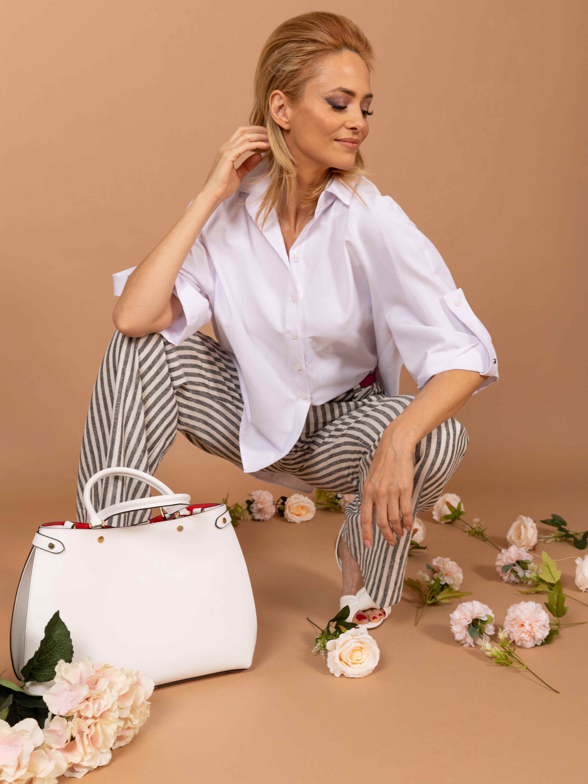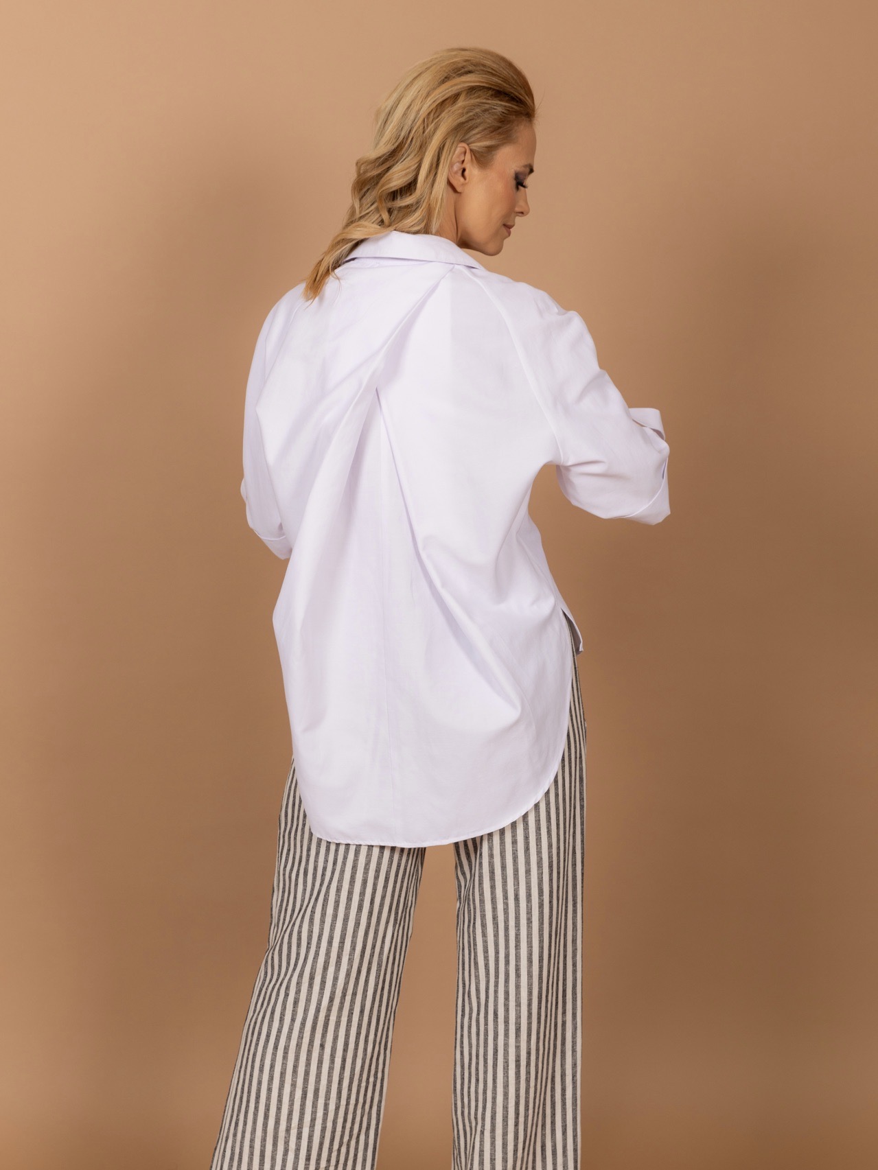 Oversize košulja od puplina-pamuk sa elastinom u beloj boji.