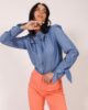 Avangardna košulja od puplina osmišljena je za žene koje ne prate trendove – one ih postavljaju. Autentični detalji, poput ruske kragne sa stilizovanim listovima i manžetni koje se vezuju u mašnu, čine je komadom koji nikoga ne ostavlja ravnodušnim. Kopča se dugmićima, a možeš je stilizovati uz klasičan jeans za moderan casual look, ili uz satenske pantalone kada želiš da zablistaš u večernjem izdanju. Originalnost zagarantovana.