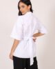 Oversize košulja izrađena od kvalitetnog puplina, dizajnirana za sve koje cene udobnost, ali ne žele da odstupe od sofisticiranog izgleda. Model karakterišu rukavi posebnog kroja – spoj raglan i kimono forme – koji unose volumen, pokret i modnu upečatljivost. Ovakva konstrukcija rukava pruža osećaj slobode i dozu glamura, čineći ovu košulju autentičnim modnim izborom. Na leđima se nalazi traka koja se vezuje u dekorativnu mašnu – funkcionalan i estetski detalj koji stvara efekat struka, uprkos oversized kroju. Dodatni šlicevi na bokovima omogućavaju lakoću pokreta i slojevito stilizovanje. Idealna za ležerne, ali i urbanije outfite – može se kombinovati sa pantalonama, šortsom ili suknjom iz AMC kolekcije.