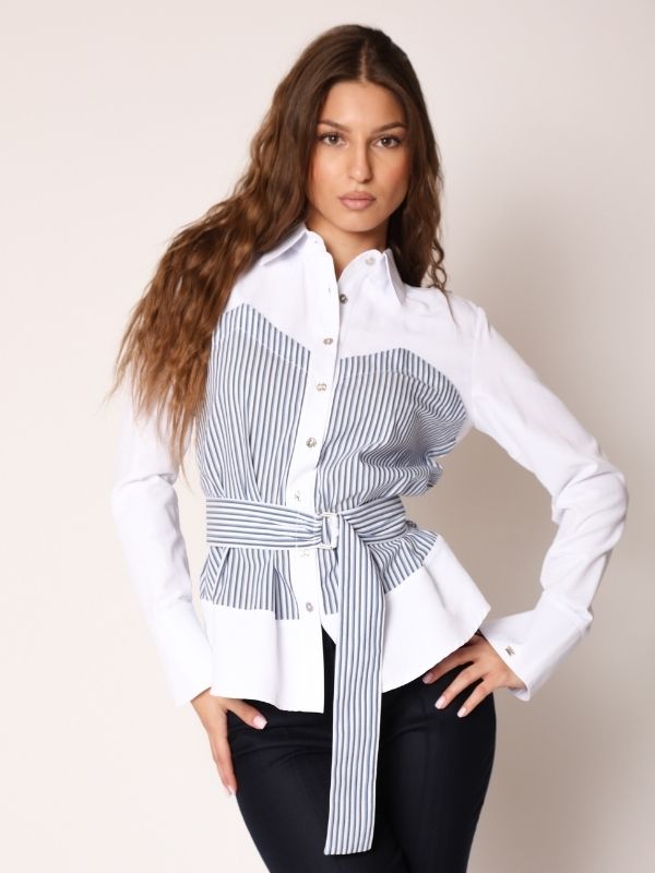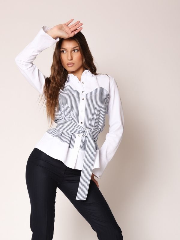 Košulja od puplina u beloj boji sa kombinacijom plavih pruga.