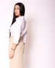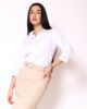 Košulja izrađena od prijatnog puplina donosi spoj udobnosti i vanvremenskog stila. Model je klasičnog kroja, sa 7/8 rukavima koji daju dozu ležerne elegancije. Kopčanje je postavljeno centralno duž prednjice, čime se zadržava čista i svedena forma. Poseban detalj predstavljaju tanke, elegantno oblikovane manžetne koje diskretno obogaćuju izgled rukava. Zahvaljujući jednostavnom, ali promišljenom dizajnu, košulja se lako kombinuje sa pantalonama, suknjama i sakoima iz prolećne AMC kolekcije, čineći je idealnim izborom za svakodnevne i poslovne prilike.