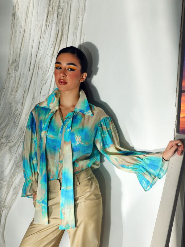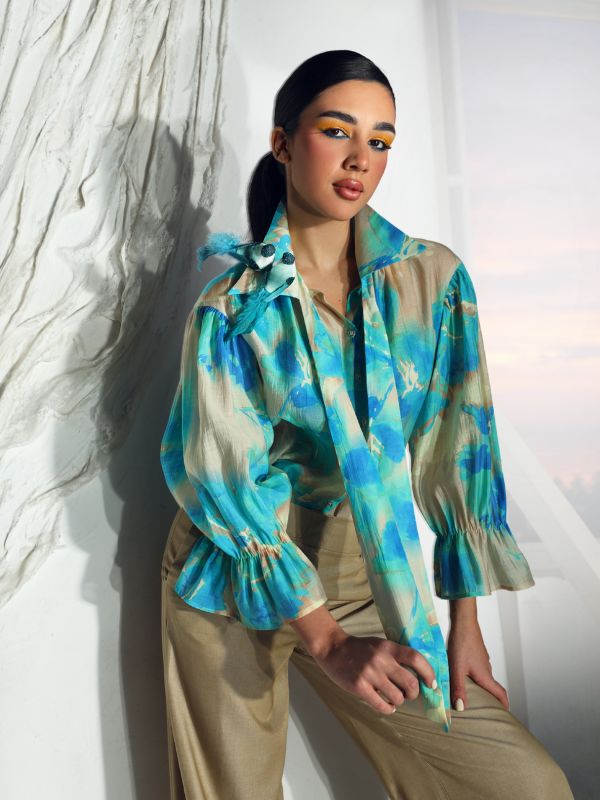Košulja se izrađuje od muslina u tirkiznom dezenu.