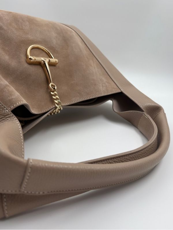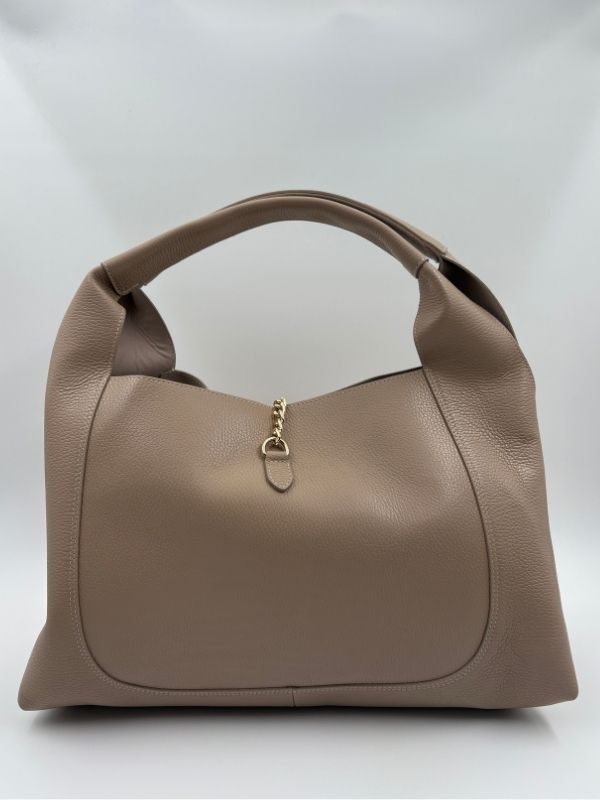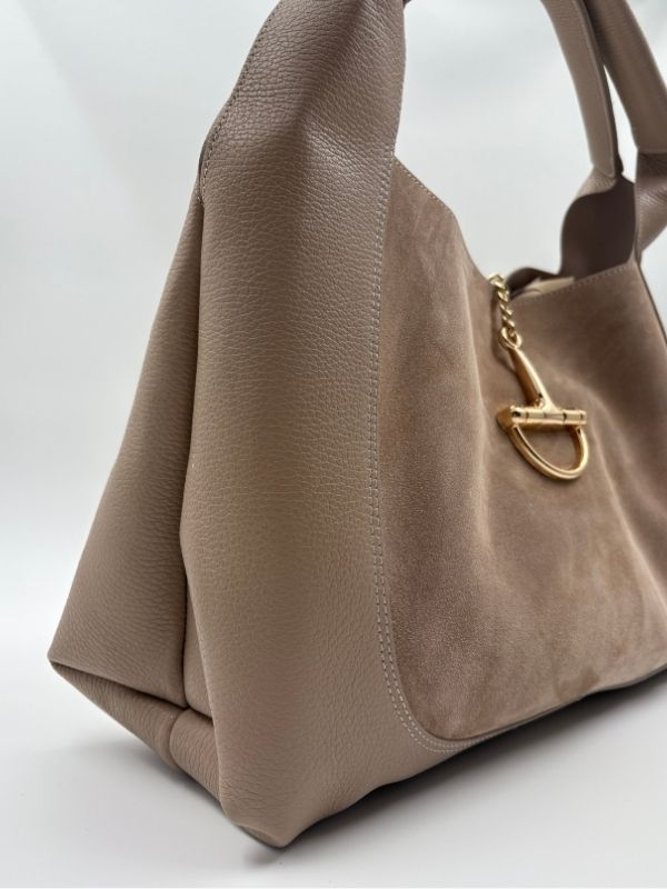 Kožna tašna u bež boji. Kompaktna i savršena za svaki outfit.