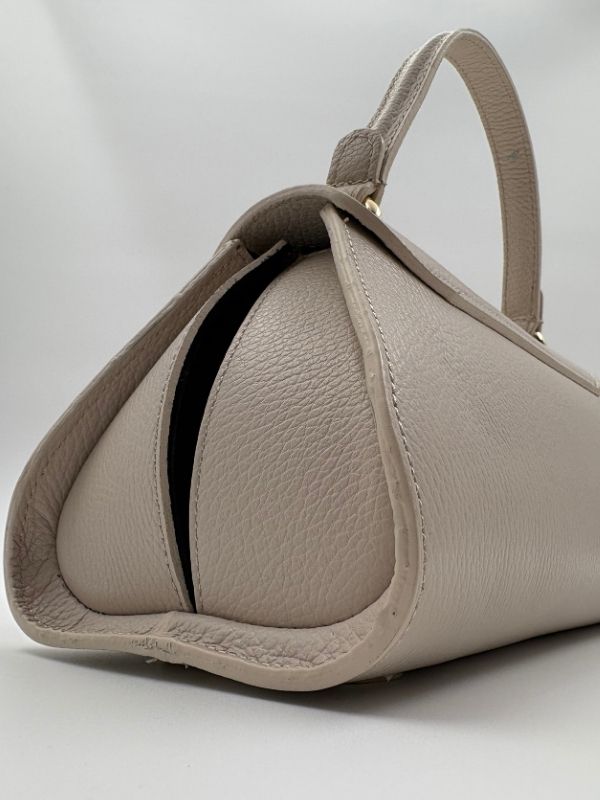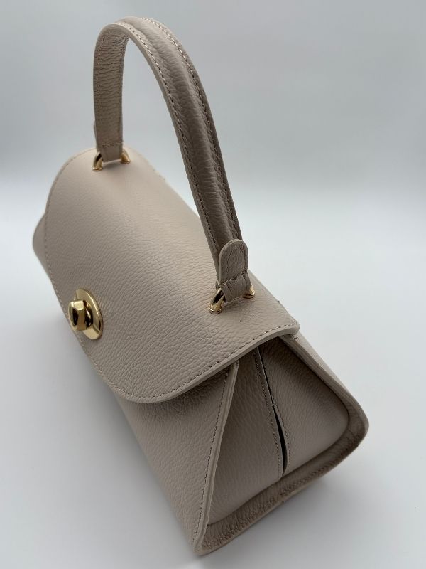 Kožna tašna u bež boji. Kompaktna i savršena za svaki outfit.
