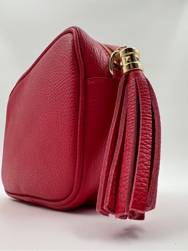 Kožna tašna u crvenoj boji. Kompaktna i savršena za svaki outfit.