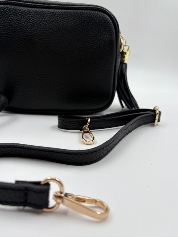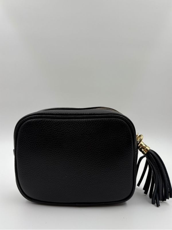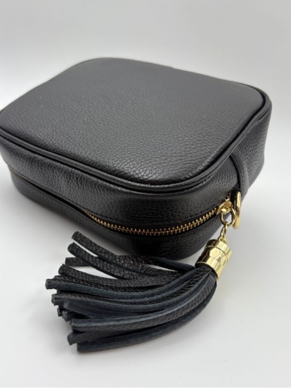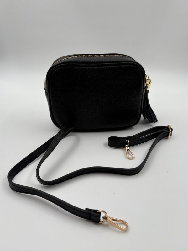 Kožna tašna u crna boji. Kompaktna i savršena za svaki outfit.