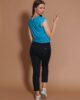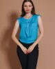 Majica sa elastinom, trikotažna. Širokih bratela sa španglom na ramenom delu. Dekolte krasi široka lajsna ispod koje se nalazi imitacija kopčanja pomoču zanimljivih dugmadi.