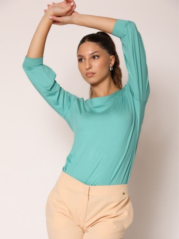 Majica dužine rukava 3/4 od trikotaže u rezedo boji.