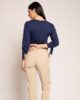 Klasična majica od mekane trikotaže sa kratkim rukavima ukrašenim mašnom za vezivanje i dubljim okruglim okovratnikom. Jednostavna, a efektna, postaje osnova svake prolećne kombinacije i savršeno se uklapa sa ostalim modelima iz nove AMC kolekcije, dajući outfitu fini i ženstveni detalj.