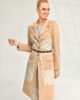 Autentičan i inovativan mantil u zanimljivoj kombinaciji, ovaj model je savršen za prolećne dane. Krasi ga dubok V izrez, spušteni reveri i providna dugmad boje ćilibara. Na bokovima se nalaze safari džepovi sa patnama. Sama inovacija je korset koji se pojavljuje kao forma u konstrukciji. Kaiš ne ide uz mantil. Mantil se može kombinovati sa kožnim kaiševima iz naše ponude.
