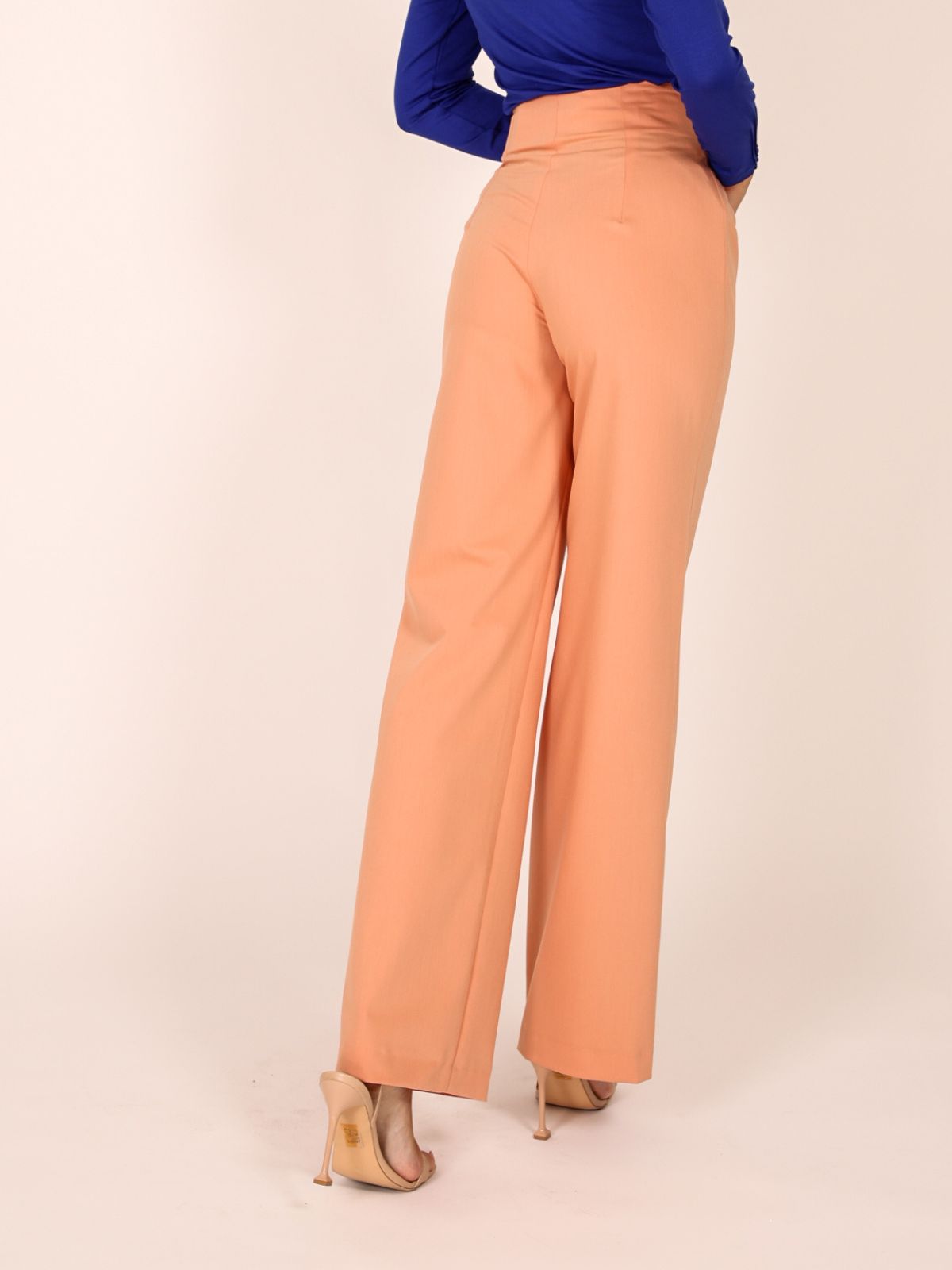 Široke pantalone, duge, sa veoma zanimljivim padom, ravnih nogavica. Uske u struku, blago visokog pojasa, kopčaju se rajsferšlusom. Savršeno se mogu kombinovti sa ostalim modelima iz outfita nove AMC jesenje kolekcije.