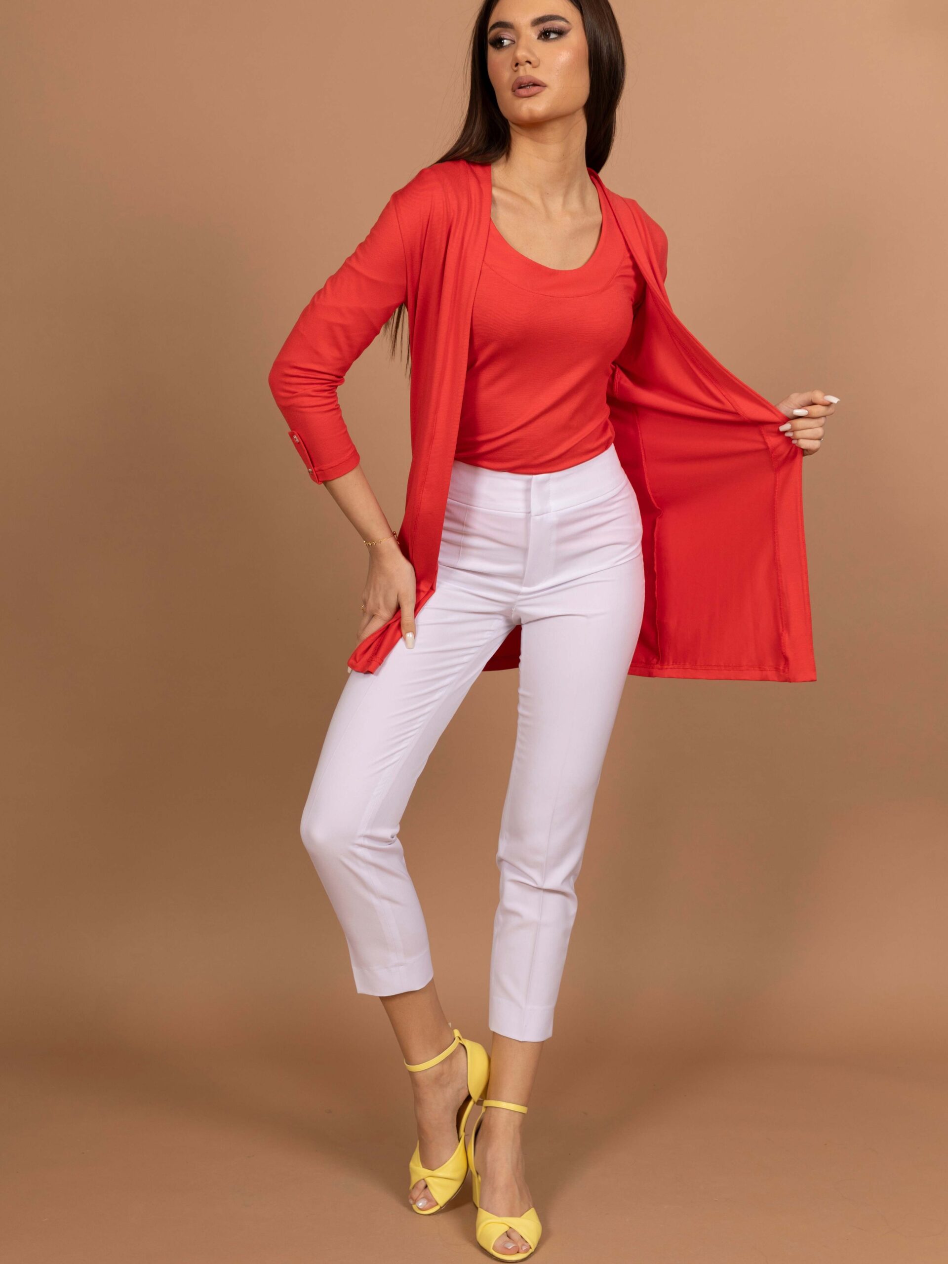 Pantalone 7/8 sa šlicem, savršene konstrukcije i kroja. Model bez gajki. Standardna dubina, kopčanje je pomoću rajsferšlusa i muške kopče. Ovaj model pantalona nema kose bočne džepove. Idealne su za kombinovanje sa ostalim modelima iz drugih outfita nove prolećne AMC kolekcije.