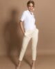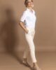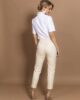 Pantalone 7/8 su klasičnog kroja, cigaret forme, sa dva kosa džepa na bočnom delu. Krase je manžetne na nogavicama. Ima gajke, pa se može kombiovati sa kožnim kaiševima iz velike AMC ponude. Klasične je dubine. Na zadnjem delu nalaze se dva ušitka koja savršeno prate liniju ženske figure, i mali paspul. Model je rađen od kvalitetnog kepera. Idealan model koji se uklapa u raznoliku ponudu letnje AMC kolekcije.