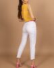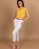 Kapri pantalone koje podsećaju na džins model, koje na zadnjem delu imaju sečeni deo satle. Na bokovima su zaobljeni džepovi. Krase je gajke, tako da se može kombinovati sa kožnim kaišem. Kopča se dugmetom i rajsferšlusom.