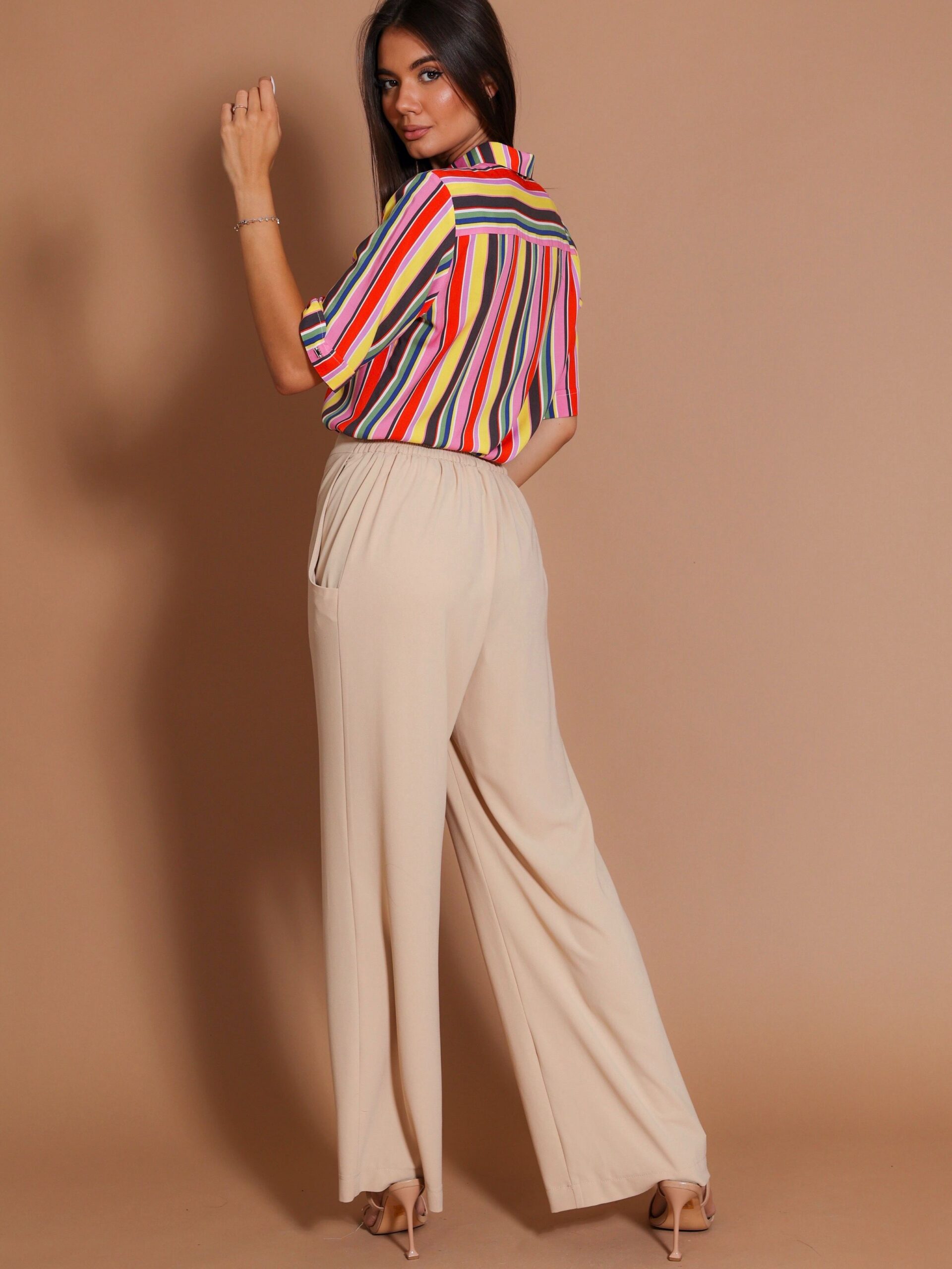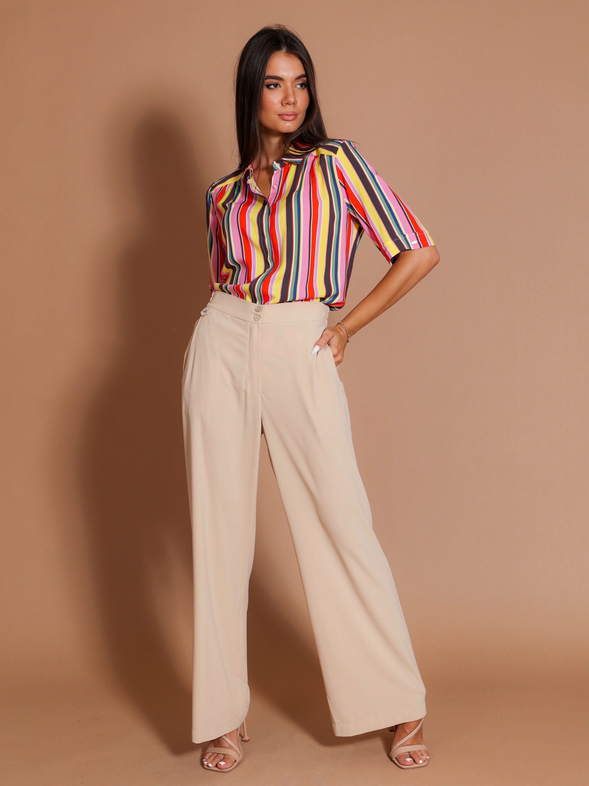 Pantalone sa lastišem na zadnjem delu-od boka do boka. Krase je veliki moderni džepovi. Kopča se napred sa dva moderna dugmeta i rajsferšlusom. Izrađuju se u dve moderne boje.