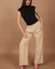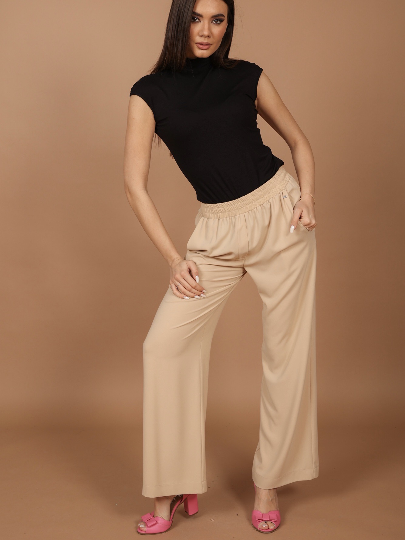 Pantalone široke forme, vrlo lagane i ležerne. Ima džepove na bočnim delovima. Krasi je lastiš u celom obimu. Može se kombinovati sa drugim modelima iz outfita.