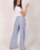 Široke pantalone sa gajkama i kosim džepovima, sada u svežem izdanju sa belo-plavim prugama, donose savršen spoj udobnosti i stila. Kosim ušitcima na prednjem delu naglašen je kežual izgled, dok manžetne na nogavicama dodaju moderan urbani šarm. Džep sa patnom pozadi, zatvoren elegantnim melanž dugmetom, upotpunjuje ovaj dizajn, čineći pantalone savršenim izborom za tople dane i ležerne, ali trendi kombinacije.