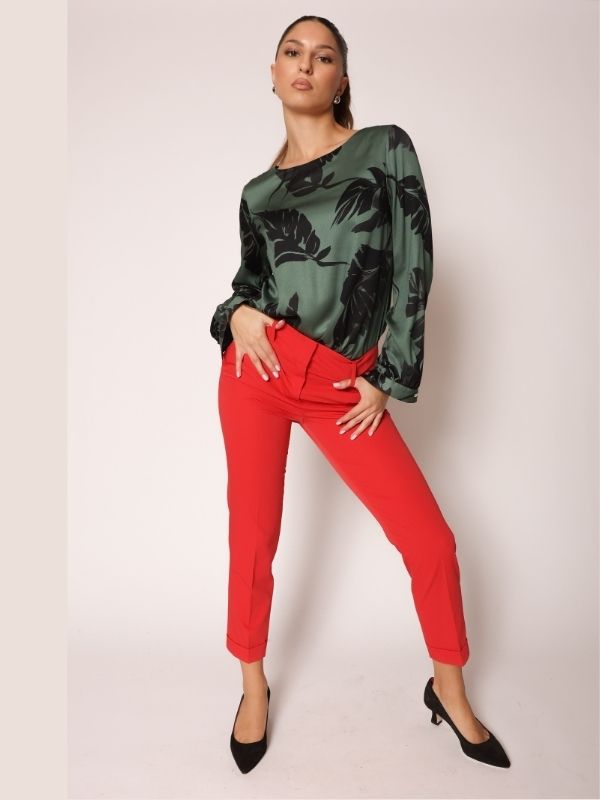 Elegante pantalone 7/8 sa šlicem, savršeno konstruisane i krojene, predstavljaju vanvremenski model koji odiše konforu. Bez gajki, sa standardnom dubinom, ove pantalone donose jednostavnost i funkcionalnost, dok kopčanje pomoću rajsferšlusa i muške kopče dodaje šik završni detalj. Bez bočnih kosih džepova, model ima minimalistički izgled, idealan za kombinovanje sa drugim komadima iz raznovrsne AMC kolekcije. Savršen spoj udobnosti, elegancije i stila.