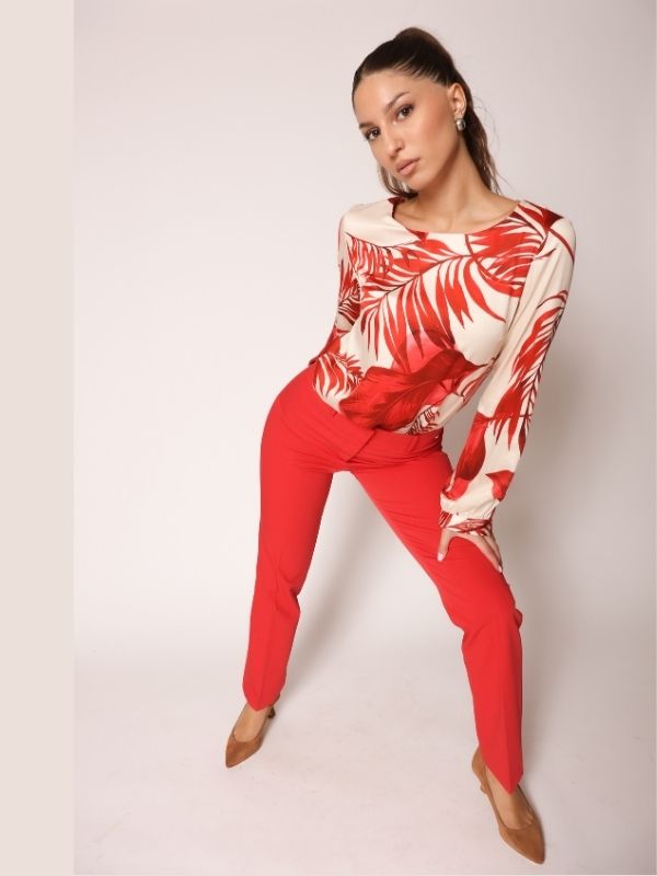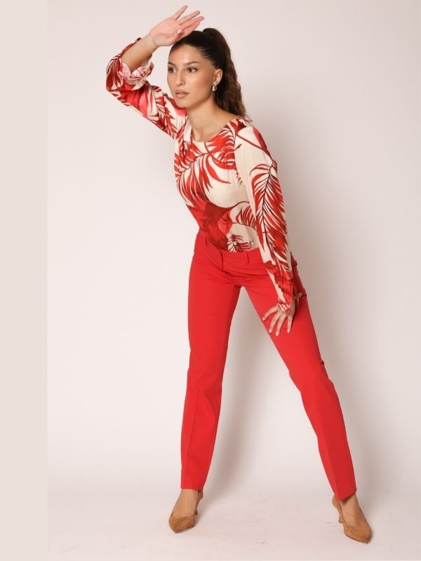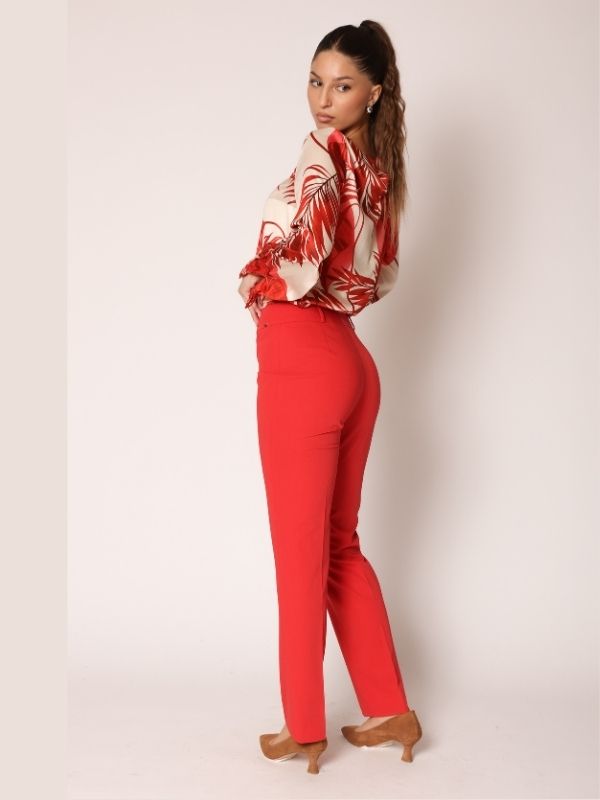 Basic duge pantalone klasičnog kroja cigaret forme, izrađene od vrhunskog štofa, donose besprekornu kombinaciju elegancije i funkcionalnosti. Sa gajkama koje dodaju sofisticirani šarm, ove pantalone sa standardnom dubinom pružaju savršen osečaj, dok na zadnjem delu dva pažljivo postavljena ušitka nežno prate liniju ženske figure, ističući njenu prirodnu lepotu. Kopčanje pomoću rajsferšlusa i muške kopče doprinosi modernom i praktičnom dizajnu, dok izostanak bočnih kosih džepova daje minimalistički izgled. Ovaj dug model pantalona idealan je za kombinovanje sa različitim komadima iz raznolike AMC kolekcije, savršen za svakodnevne, a i elegantne outfite.