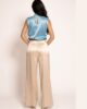 Pantalone visokog pojasa odišu minimalizmom, ali istovremeno plene modernim izgledom. Dugih nogavica koje se pri dnu šire u suptilan zvonasti oblik, pružaju lagan pad i lepršav pokret. Precizno oblikovani ušitci na prednjem i zadnjem delu dodatno naglašavaju ženstvenost i savršenu formu ovog modela. Jednako prikladne za svakodnevne modne kombinacije i posebne svečane prilike, ove pantalone su vanvremenski komad koji unosi eleganciju i samopouzdanje u svaki stil.