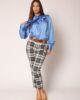 Pantalone sa manžetnom od štofa u plavom karo dezenu.