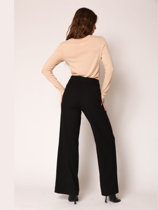 Pantalone duge sa širokim nogavicama u crnoj boji.
