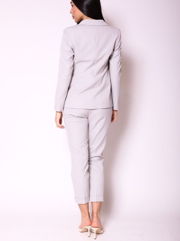 Elegantne pantalone 7/8 cigaret kroja izrađene od vrhunskog kvalitetnog kepera, pružaju moderne linije. Sa dva kosa džepa na bočnim stranama, ove pantalone nude praktičnost i stilski šarm, dok manžetne na nogavicama dodaju dašak urbanog stila. Klasična dubina savršeno oslikava žensku figuru, dok na zadnjem delu dva pažljivo pozicionirana ušitka nežno prate liniju tela, upotpunjena malim paspulom koji je pravi detalj za eleganciju. Ovaj model je savršeni dodatak raznolikoj AMC kolekciji, pružajući besprekornu kombinaciju udobnosti, stila i kvaliteta.
