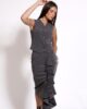 Prsluk sa potpuno kontra varijantom dezena u vidu postave. Model se kopča na prednjici zanimljivim melanžiranim dugmićima. Sako ima paspul džepove na bočnim delovima. Dezen sivo-crne pruge podižu ovaj model na potpuno moderan nivo.