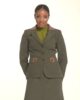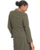 Sako od kvalitetnog jesenjeg štofa u kombinaciji braon kože i štepa u kontra boji koja prati boju cimeta. Oborenog revera sa zanimljivom kombinacijom. Kopčanje dugmićima na prednjici, model dugih rukava. Stilizovani džepovi sa faltom kopčaju se dugmićima. Model je zanimljive inovativne forme savršen za predsojeće jesenje dane.